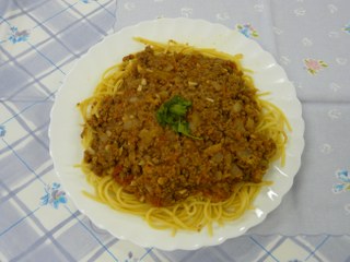 第九組:黃美恩、吳曉儀 所選菜式:免治肉醬意粉 |