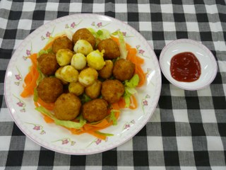 第九組:李鈺琪、黃紫晴 所選菜式:炸雀巢蛋 |